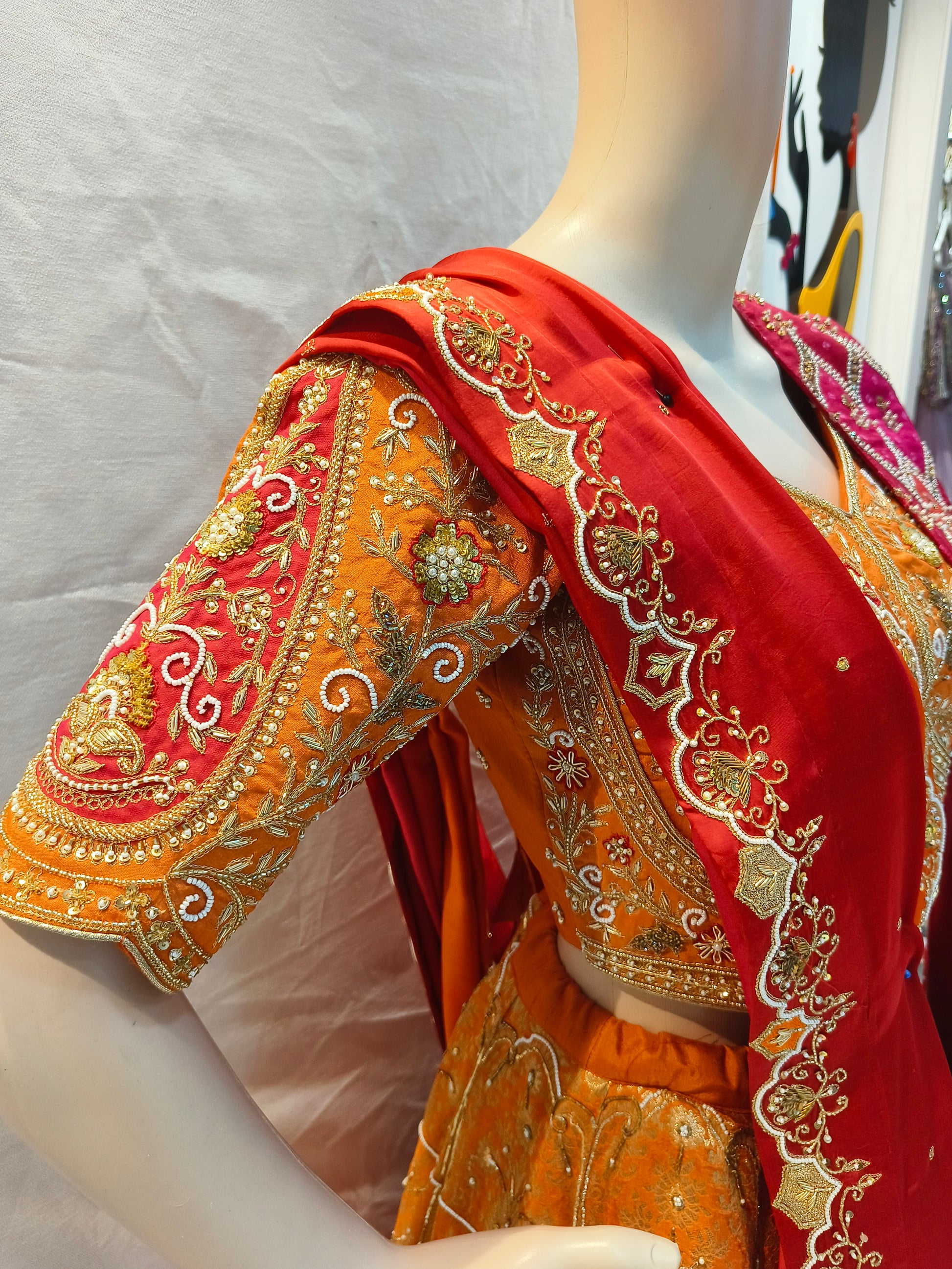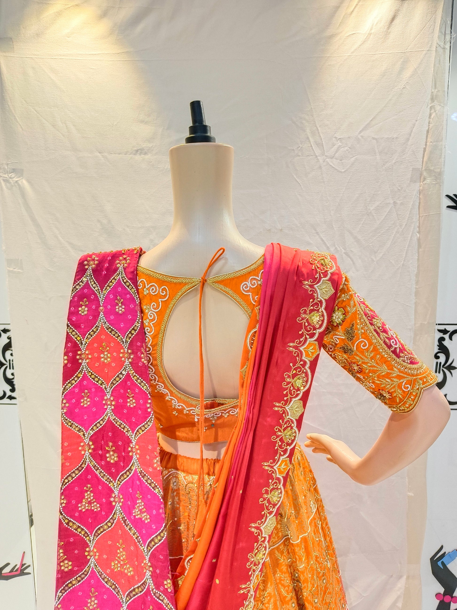 - Orange Pink designer lehenga