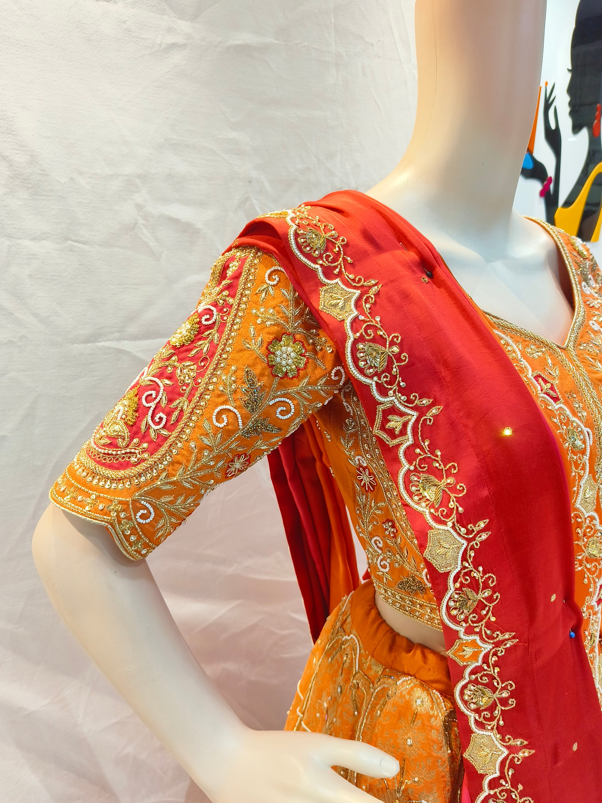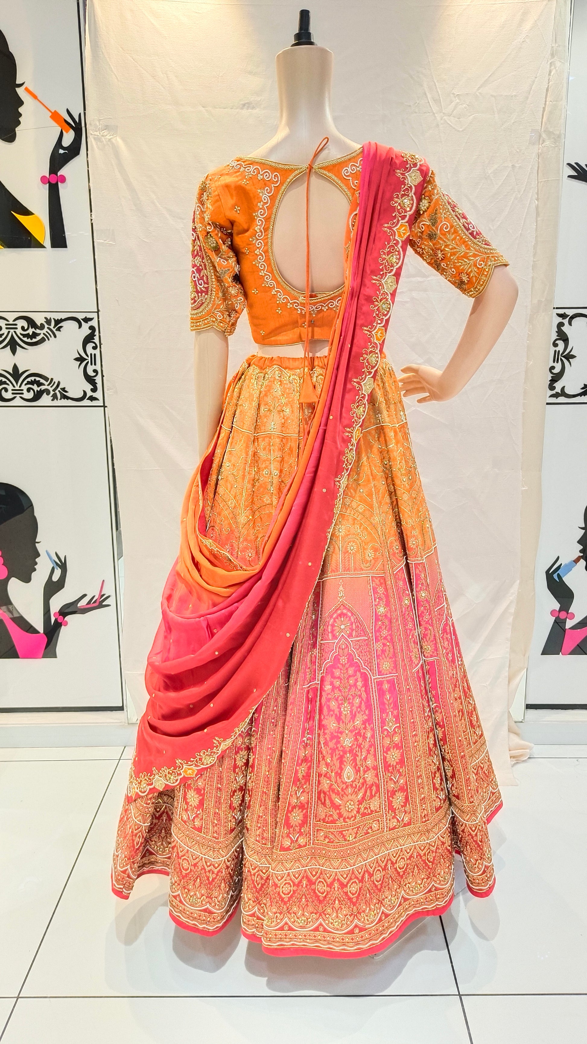 - Orange Pink designer lehenga