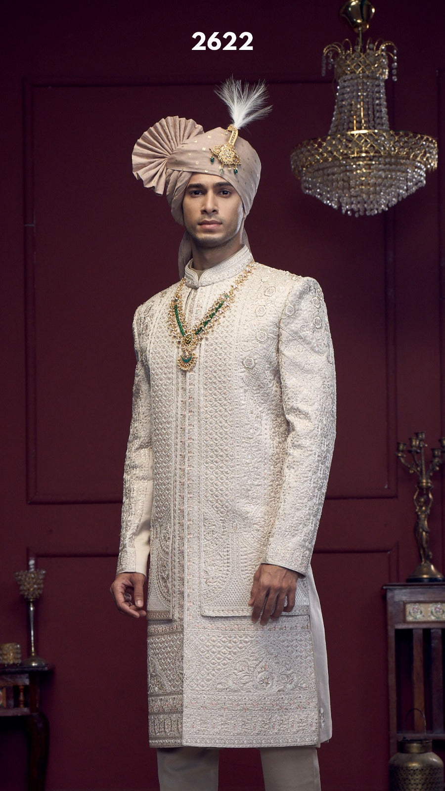 Elevate your traditional wardrobe with this Full Embroidered Sherwani, meticulously crafted to showcase intricate embroidery that reflects expert artistry.Β
