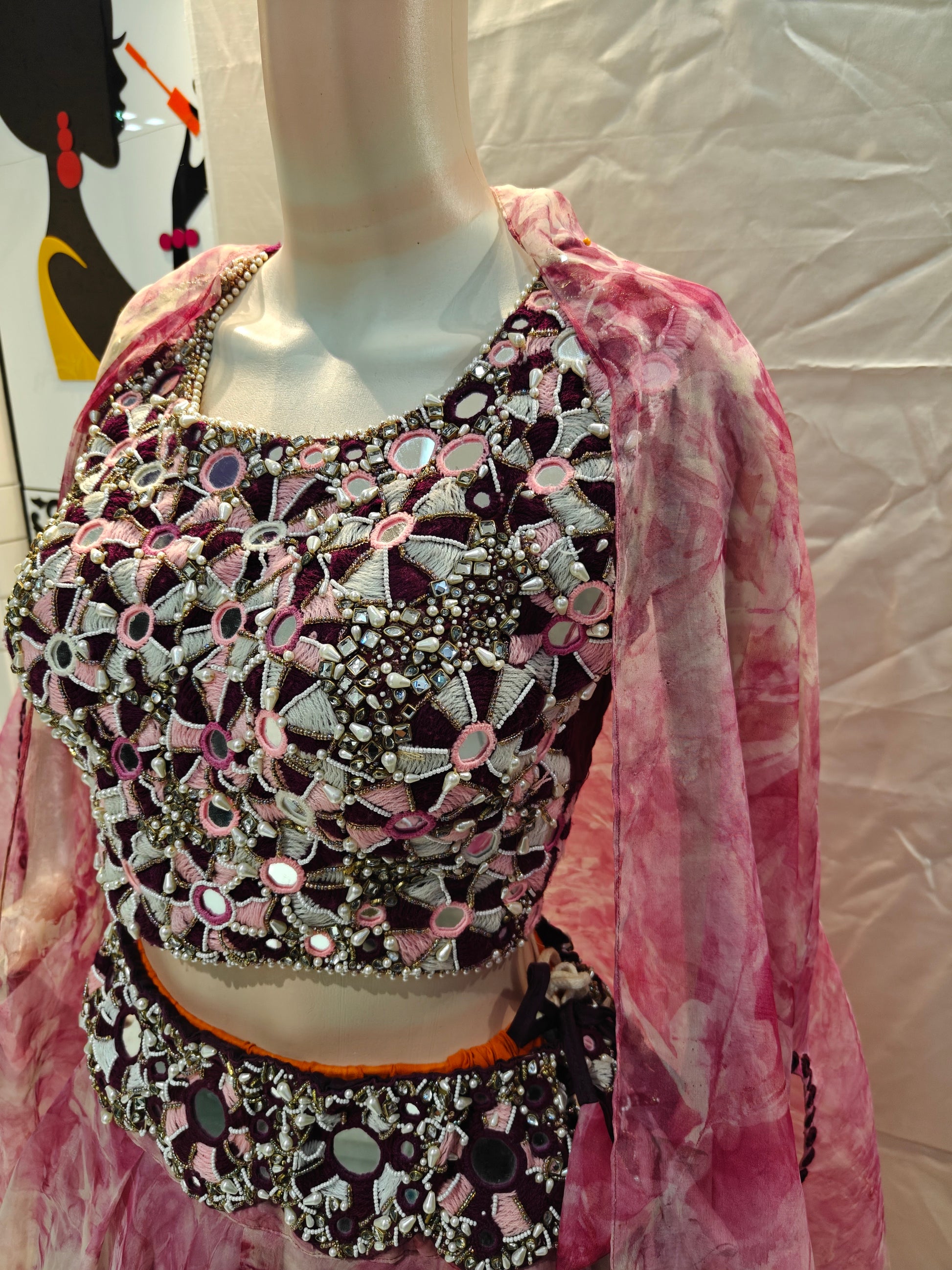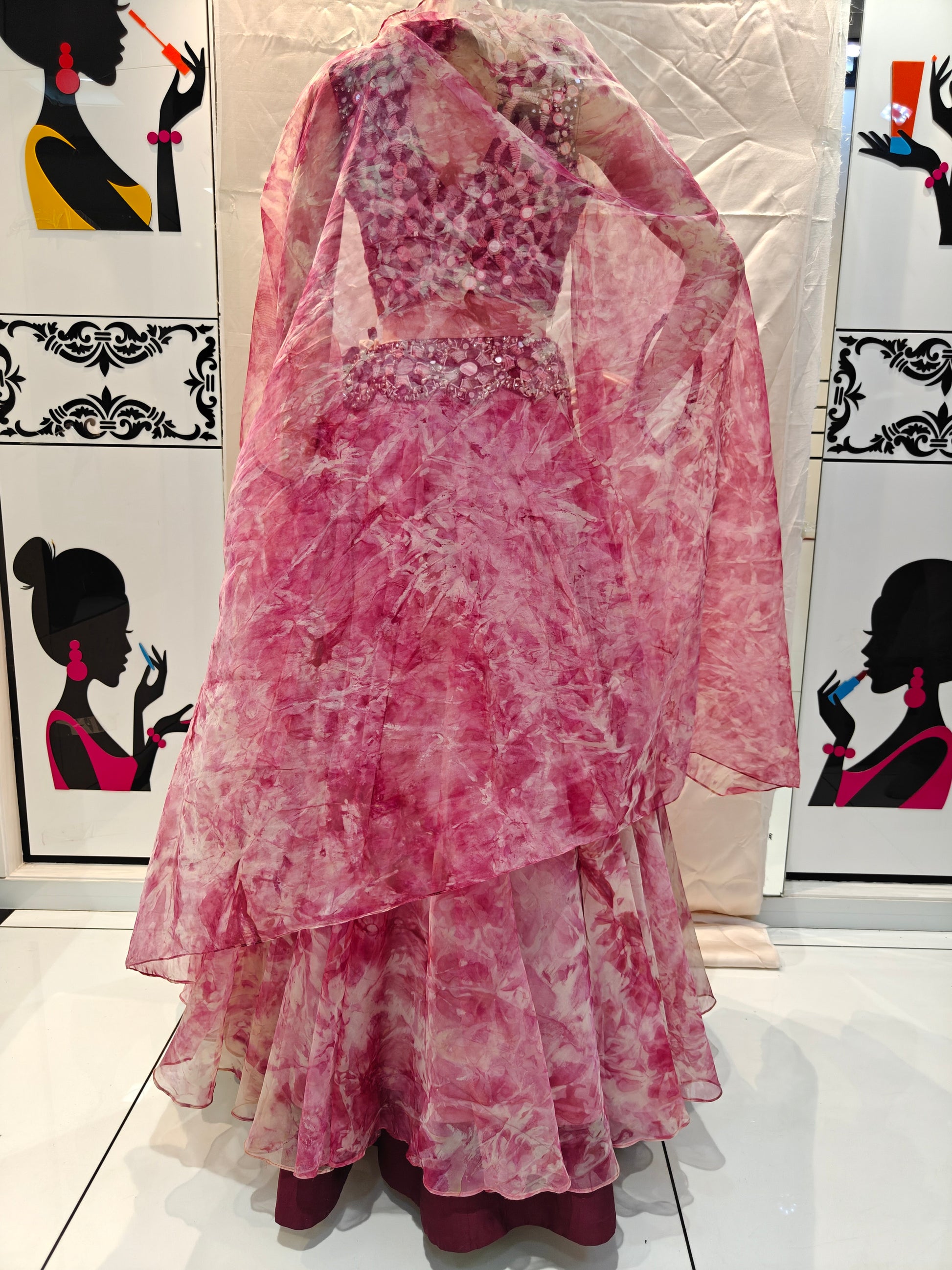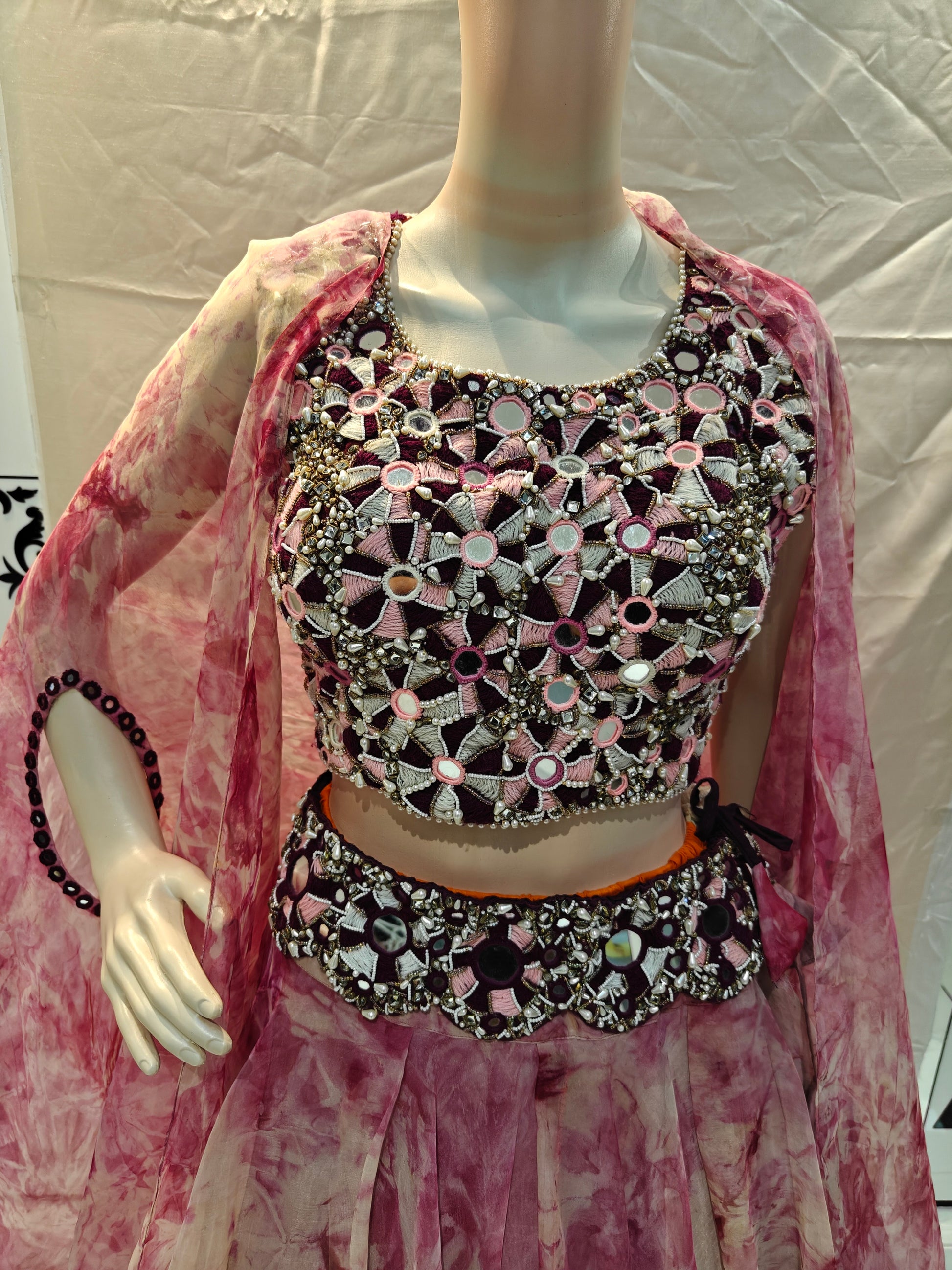 - Floral pink designer lehenga